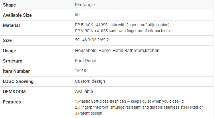Plastic Rectangle Office Hotel Hospital Waste Bin Foot Pedal- 50L