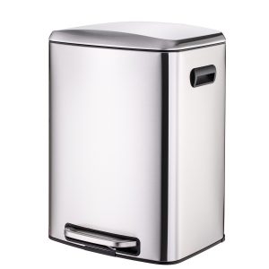 All Plastic Rectangle Stainless Steel Storage Bucket with Foot Pedal – 40L