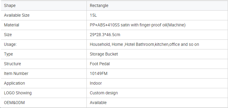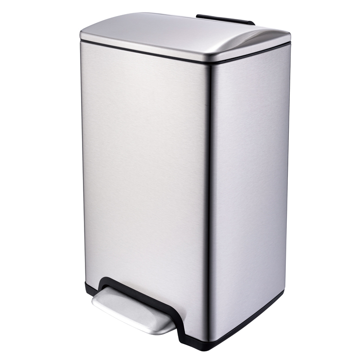 Rectangle soft-close trash can with steel pedal-15L